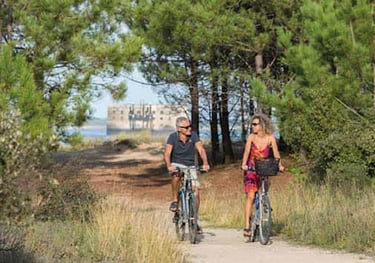 Louez un vélo et explorez les pistes cyclables de l'île d'Oléron, en profitant des plages magnifiques et des paysages côtiers.